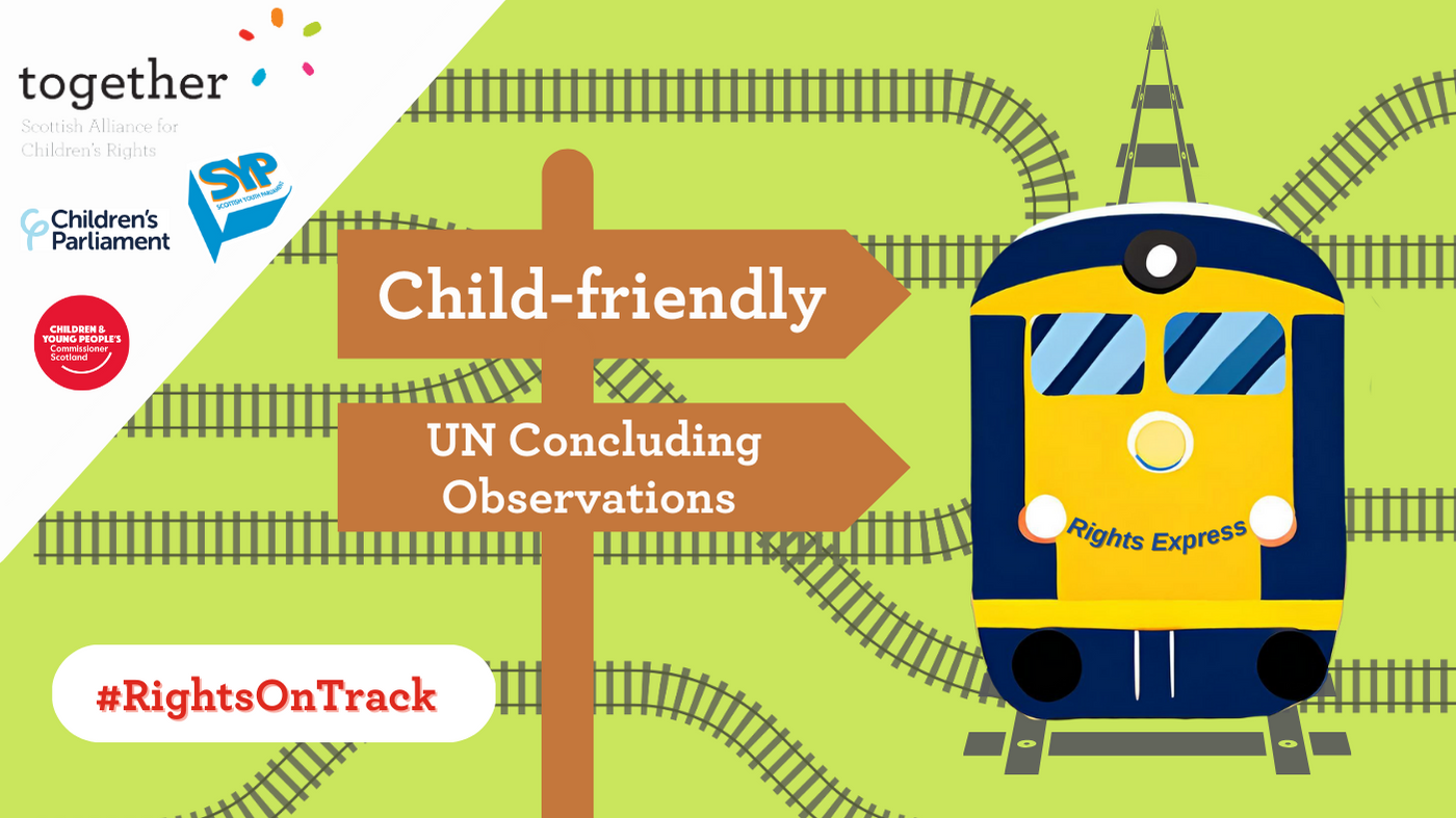 In this new resource, Together’s Rights Express Train takes children and young people on a journey through Scotland's ‘to do’ list to get children's #RightsOnTrack. The resource hopes to support children and young people to learn more about their rights and what the Scottish Government should be doing to protect their rights. We hope this resource will be a helpful tool to support children’s ability to hold Scottish Government and other duty bearers to account, so please share it amongst all the children and young people you know or work with.